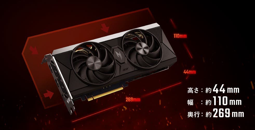 | その他機能 | Nitro FrostBlade™ ファン×2、DirectX 12 Ultimate対応、OpenGL 4.6対応、PCI Express 5.0×16対応 | |