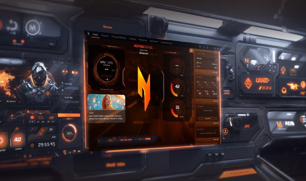 NitroSense™で、ゲーミングPCのあらゆるパフォーマンスを直感的にコントロール。独立したNitroSenseキーを押すだけで立ち上がり、システム温度、電力設定、使用状況をリアルタイムで監視可能。4つの動作モード(静音、バランス、パフォーマンス、エコ)を使い分けることで、使用シーンに応じた最適な冷却・静音・省電力環境を実現します。Experience Zoneでは、AI関連機能をひとつに集約し、ゲームプレイや日常作業に役立つスマートな体験に簡単アクセス。Acer PurifiedVoice™とPurifiedView™によるAIノイズ低減や自動映像補正もここから管理可能。すべての制御をこの場所で。