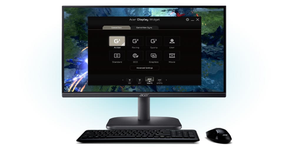 Acer Display Widget (エイサーディスプレイウィジェット) は、モニターの設定をより直観的に行えるソフトウェア*です。モニターの使用目的に最適なディスプレイモードを選択したり、ブルーライト、輝度、コントラスト、6軸色、彩度などの詳細を調節し保存可能。11タイプの分割画面設定からアプリケーションを特定のエリアに設定/割り当てることができます。いちど設定してしまえば、アプリケーション/ウィンドウをそのエリアにドラッグするだけで、ウィンドウが自動的に整理されます。