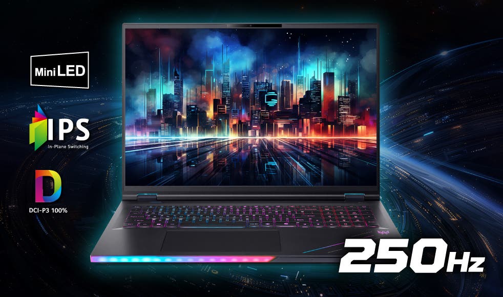 鮮烈な色彩、圧倒的な描写となめらかさ。そして、どこまでも被写体を明るく、映し出す映像美。18インチの大画面にWQXGA(2560×1600)16:10の高解像度を搭載し、IPSパネル、Mini LEDによる高コントラスト比と深みのある黒、そしてDCI-P3 100%の広色域により、臨場感あふれるリアルな映像表現を可能にします。さらにリフレッシュレート250Hzで、驚くべき応答速度と流れるようなスムーズなモーションを実現。スクリーン対ボディ比90.47%の狭額ベゼルと併せて、つぎつぎと臨場感のある世界に昇華し、かつてない映像体験であなたを勝利の景色へ導きます。