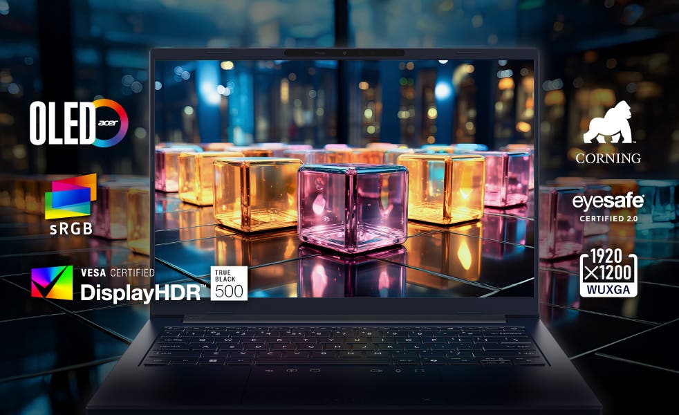 14インチ WUXGA(1920×1200)の光沢 OLED ディスプレイを搭載し、DCI-P3 100%の広色域と1,000,000:1のコントラスト比に対応。深みのある黒と豊かな色彩表現で、映画を観る時もプロジェクトに集中する時も、迫力ある映像体験を叶えます。VESA Certified DisplayHDR™ True Black 500 認定により、繊細なシャドーディテールを忠実に描き出し、映像に奥行きをプラス。さらに TÜV Rheinland Eyesafe® 2.0 認証取得ディスプレイはブルーライトを大幅に軽減し、長時間の作業でも安心です。最大90Hzの高リフレッシュレートによるなめらかな描画とともに、シネマクオリティの映像をあなたの毎日に。
