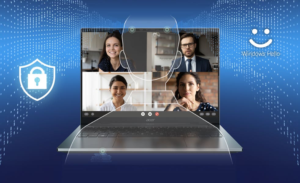約207万画素のフルHD IR Webカメラを搭載し、顔認証にも対応。Acer TNRテクノロジーが暗所でもノイズを抑え、鮮明な映像を届けます。さらにAcer PurifiedView™2.0が自然なポートレート映像を実現し、ビデオ通話も美しく演出。3基の内蔵マイクとAcer PurifiedVoice™2.0がAIノイズ抑制で雑音を低減し、クリアな音声を相手に届けます。だから、まるで同じ空間にいるような自然な会話を楽しめます。