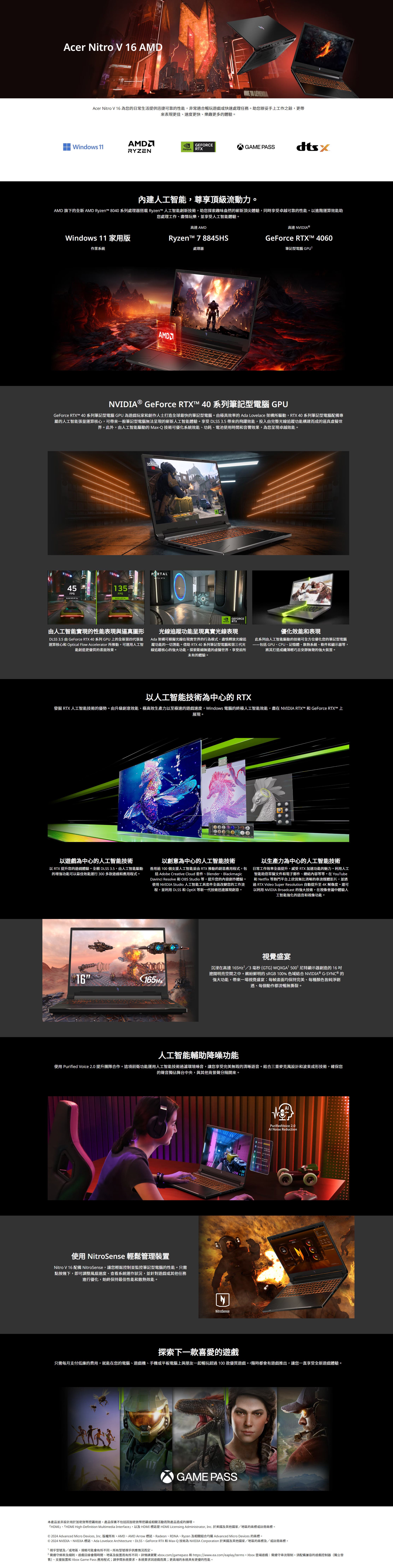 【11.11閃購限量3部】Nitro V 16 | ANV16-41-R4QD | RTX 4060 | Ryzen 7 8845HS | 16" WUXGA IPS 165Hz | 16GB | 1TB SSD | 電競手提電腦