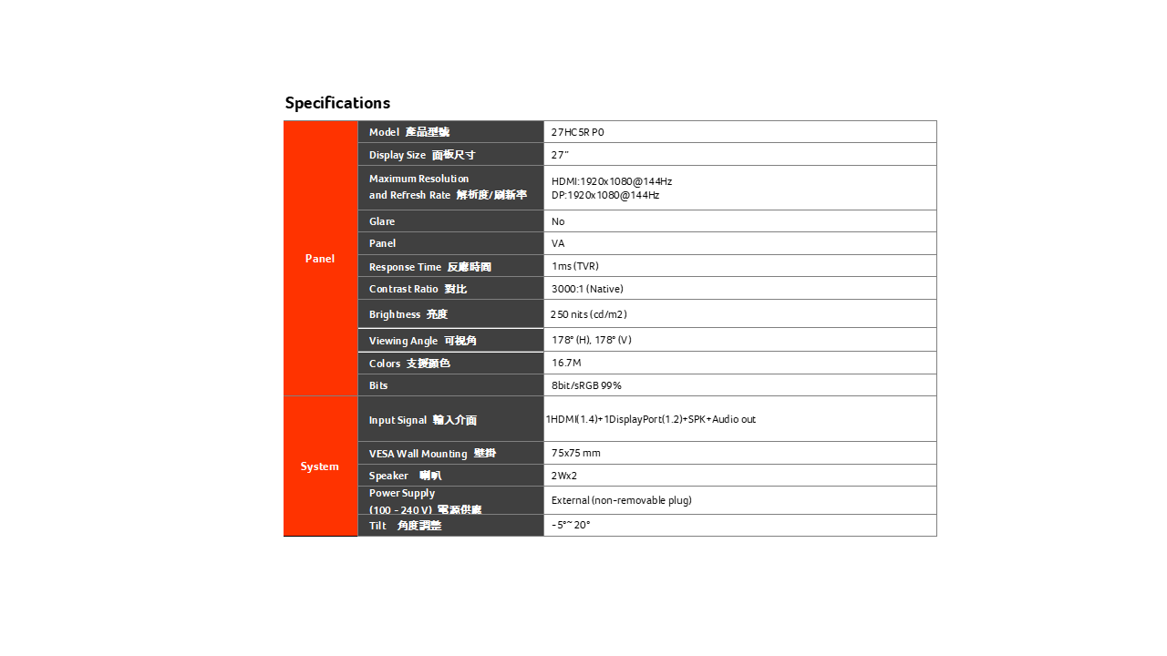 VESA Mount Compatible |