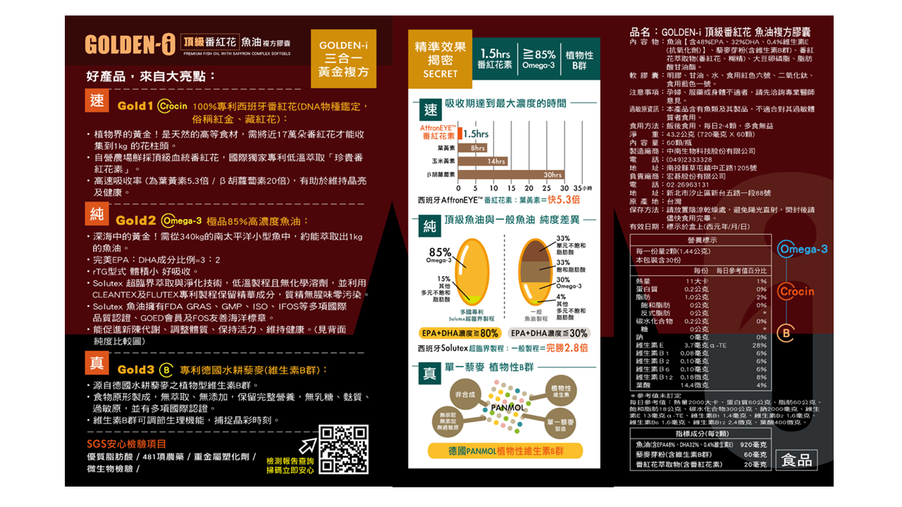 GOLDEN-i 頂級番紅花魚油複方膠囊 4瓶組 (60粒/瓶)