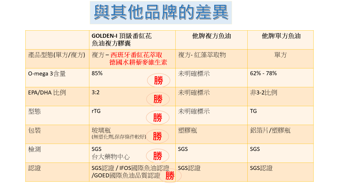 完美EPA:DHA成分比例=3:2, rTG型式,體積小好吸收,
