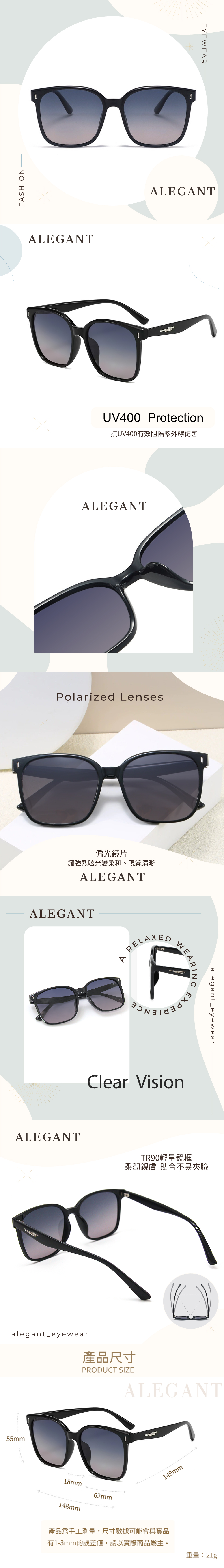【ALEGANT】晨霞映藍韓版中性時尚方框TR90寶麗來偏光墨鏡│UV400太陽眼鏡-晨霞映藍