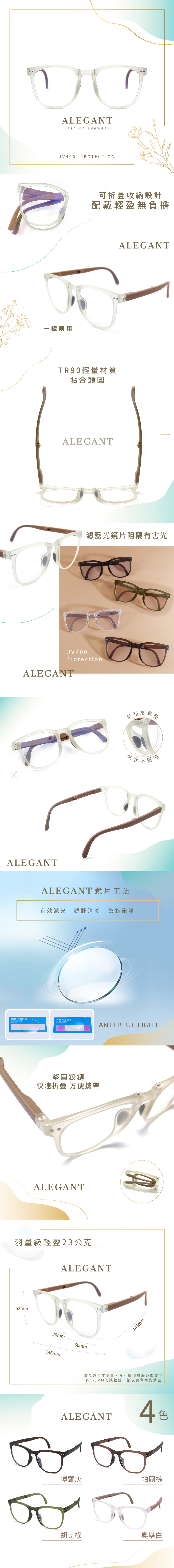 【ALEGANT】樂讀時尚多功能奧塔白TR90輕盈氣墊感折疊款方框UV400濾藍光眼鏡