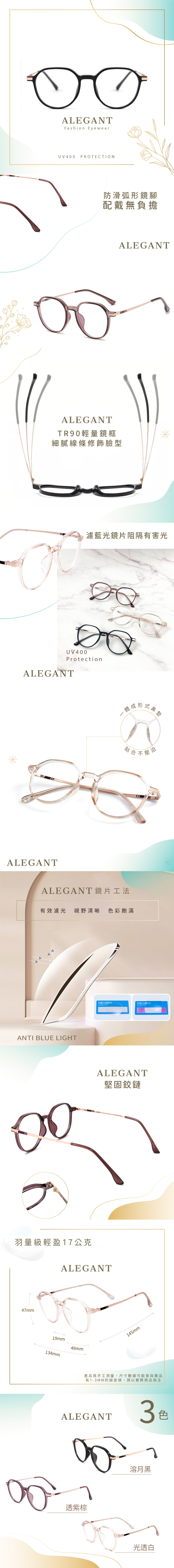【ALEGANT】文藝復古溶月黑TR90輕量幾何圓框金屬鏡腳UV400濾藍光眼鏡