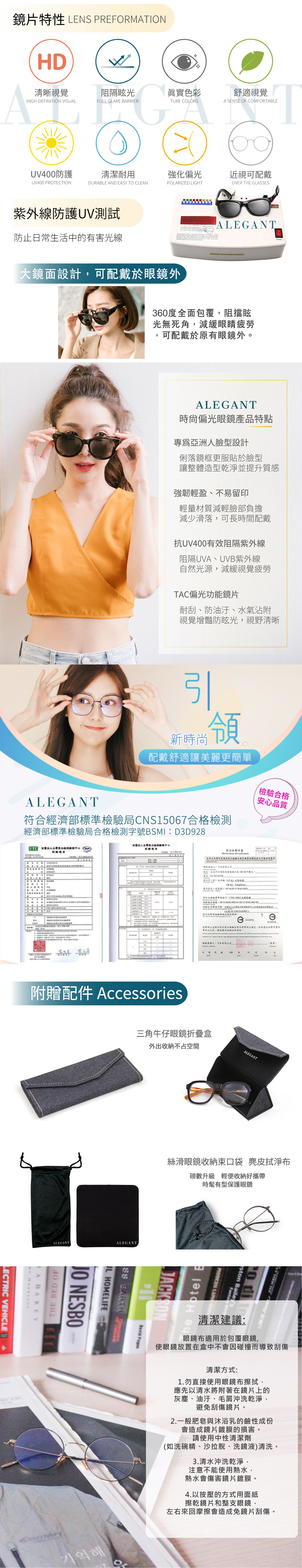 經典時尚鏡框配上UV400偏光鏡片,休閒中帶點個性玩味。