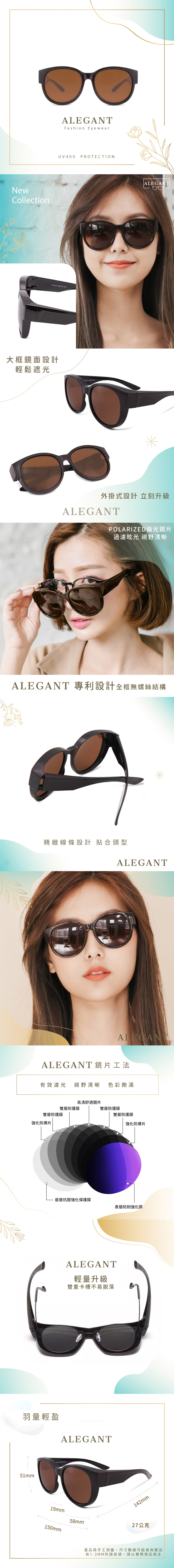 【ALEGANT】蜜茶棕圓框全罩式偏光墨鏡│外掛UV400太陽眼鏡│套鏡