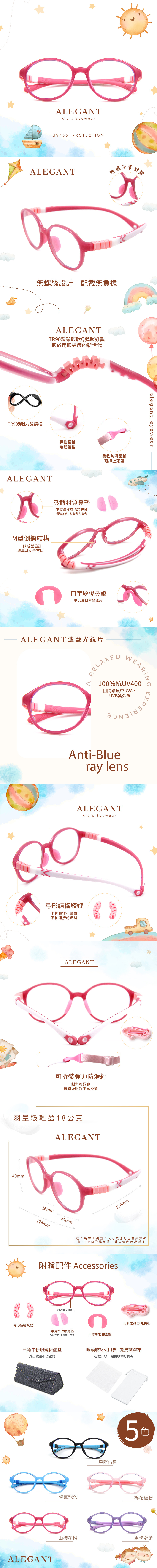 【ALEGANT】山櫻花粉無螺絲設計輕量柔韌彈性圓框UV400兒童光學濾藍光眼鏡(附可拆裝防滑眼鏡繩)
