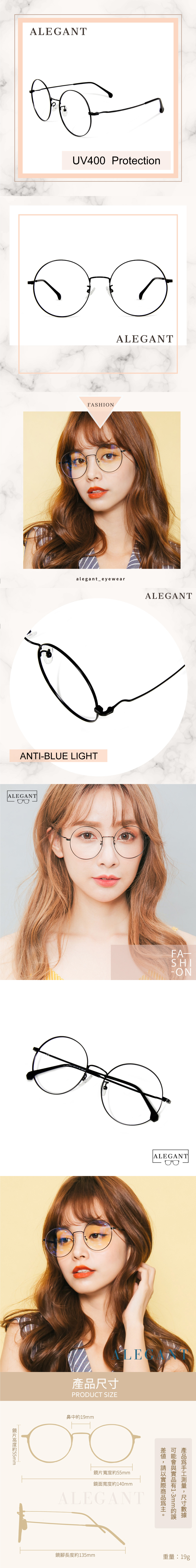 【ALEGANT】質感黑細圓光學框顯小臉UV400濾藍光眼鏡