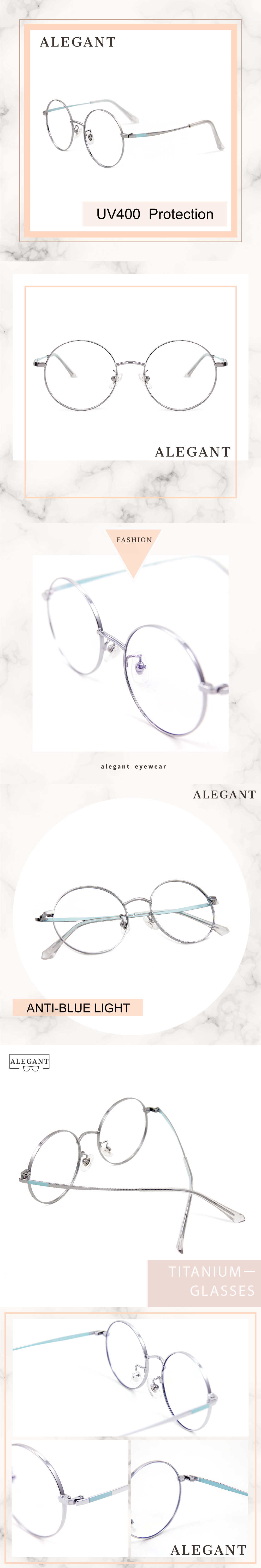 【ALEGANT】冰幻藍銀輕量鈦金屬緞面北歐質感圓框UV400濾藍光眼鏡│冰火之境的幻藍溫泉湖