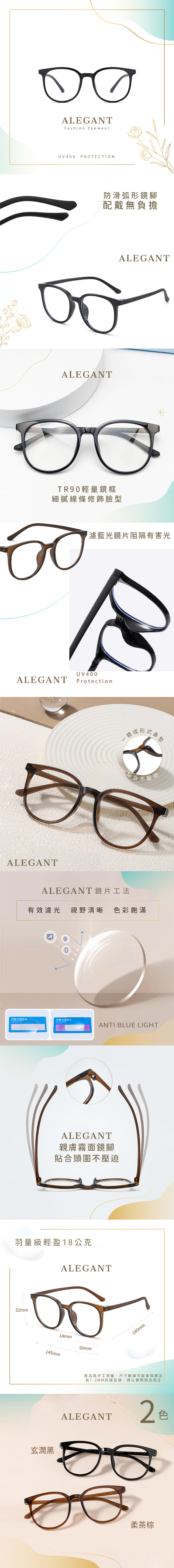 【ALEGANT】文藝風尚柔茶棕TR90輕量圓框親膚霧面鏡腳UV400濾藍光眼鏡
