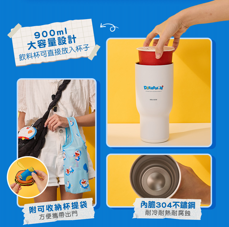 【Hiromimi】哆啦A夢304不鏽鋼冰霸杯袋組900ml-哆啦A夢