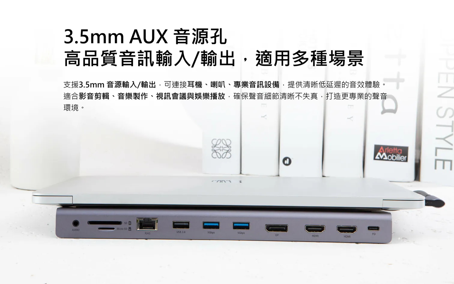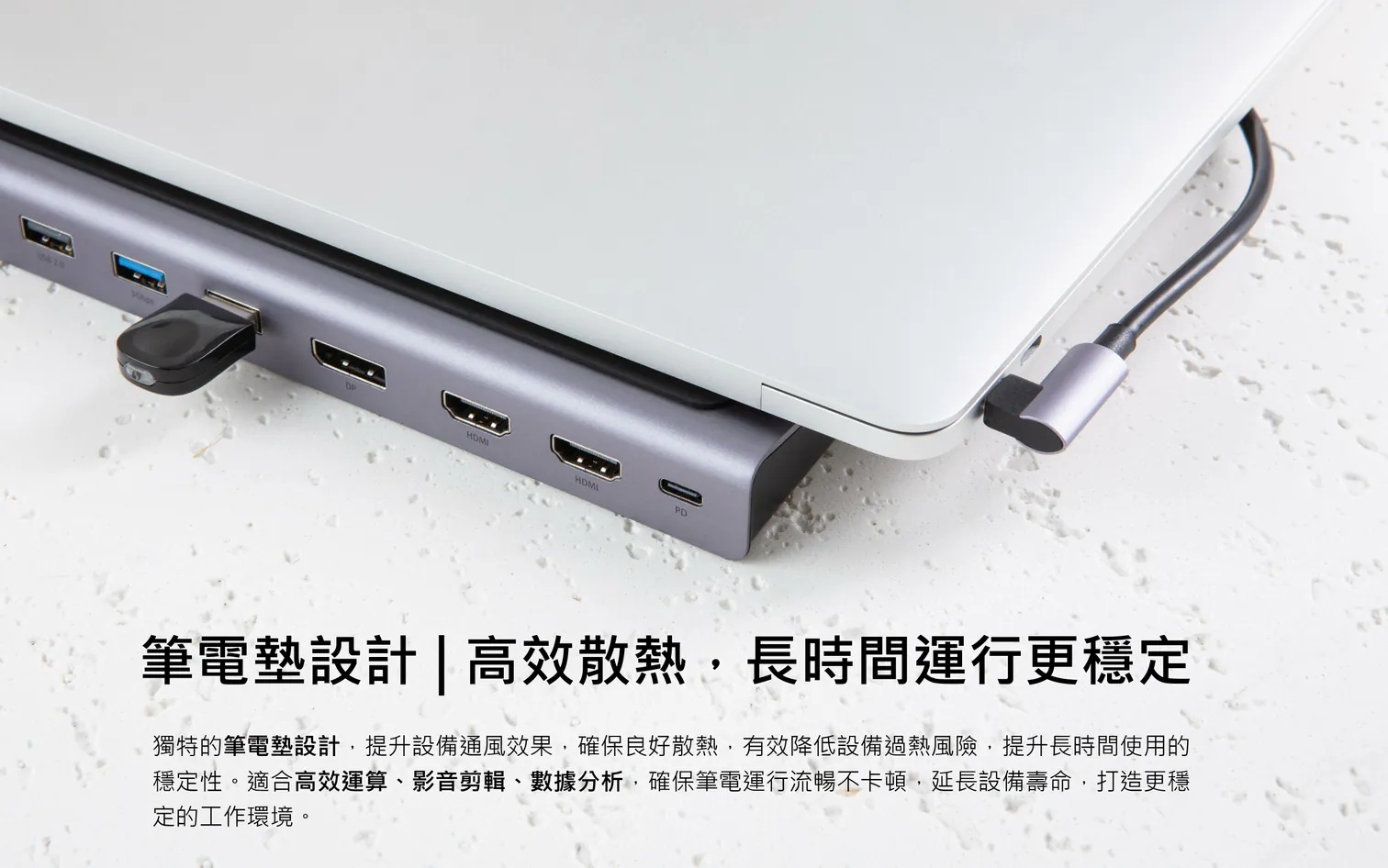 12. 可做為筆記型電腦增高底座,可擴充您的工作站,統一串接多個裝置,並使桌面乾淨整潔