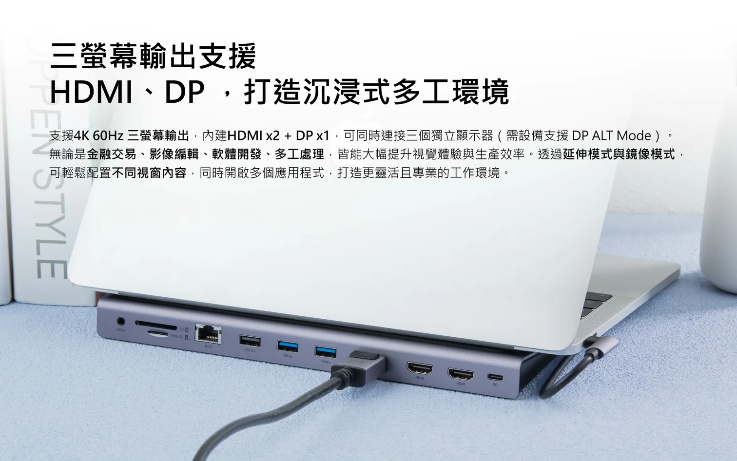 11. IPAD/筆電畫面輕易轉接(設備需支援DisplayPort Alternate Mode)
