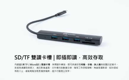 後端接頭規格:USB-A 5Gbps x 3,SD Reader x 1,TF Reader x 1
