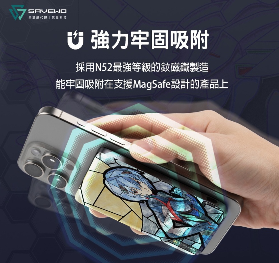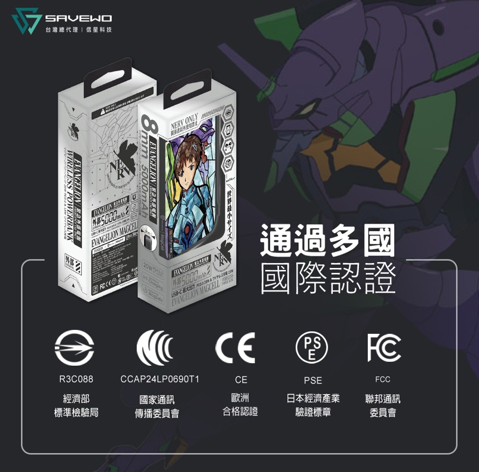 【獨家聯名】第二彈 EVA 新世紀福音戰士 SAVEWO 救世 MagCell MC509 磁能寶 5000mAh_碇真嗣_EVA07