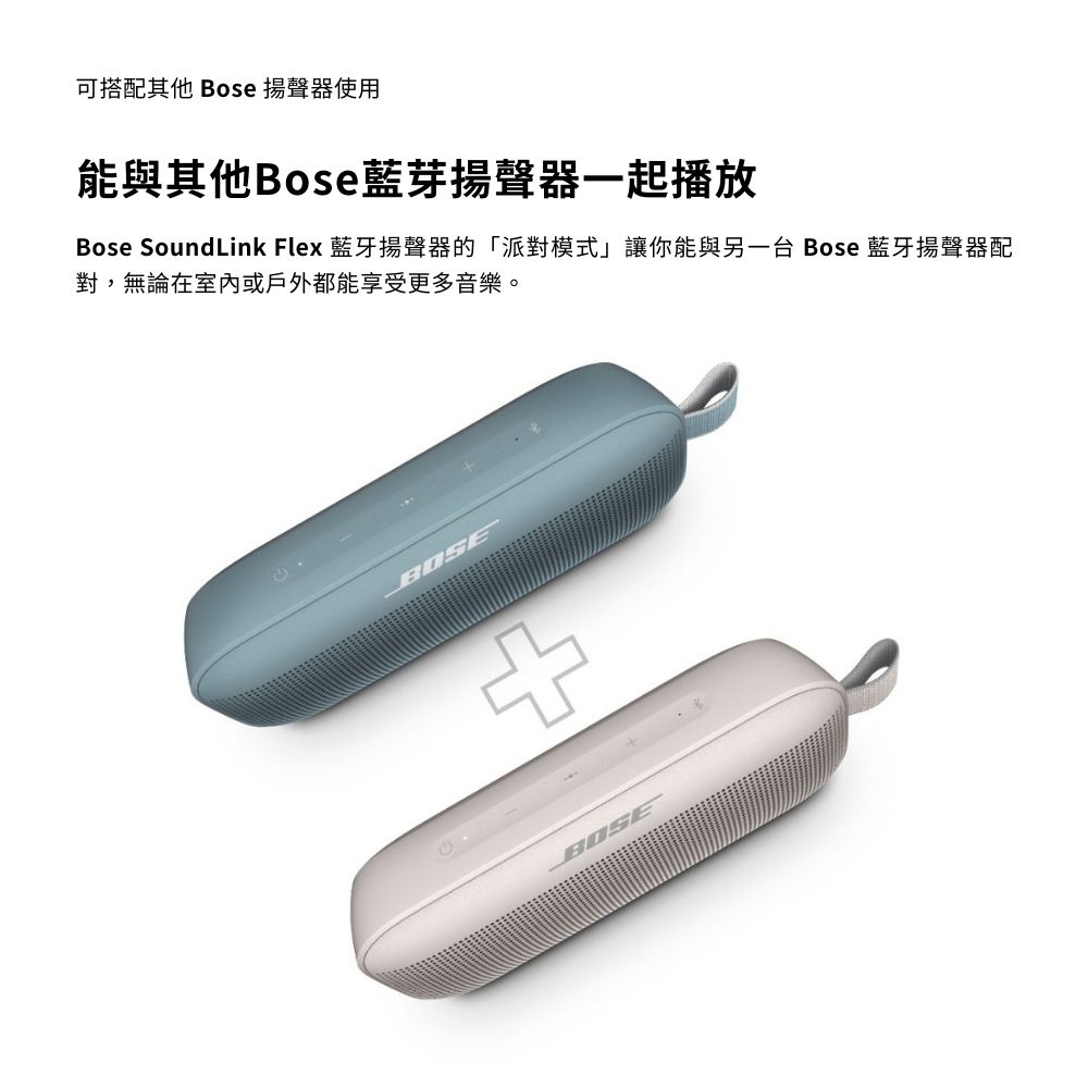 - SoundLink Flex 可與 30 英尺範圍內的藍牙設備(如手機和其他 Bose喇叭)配對。