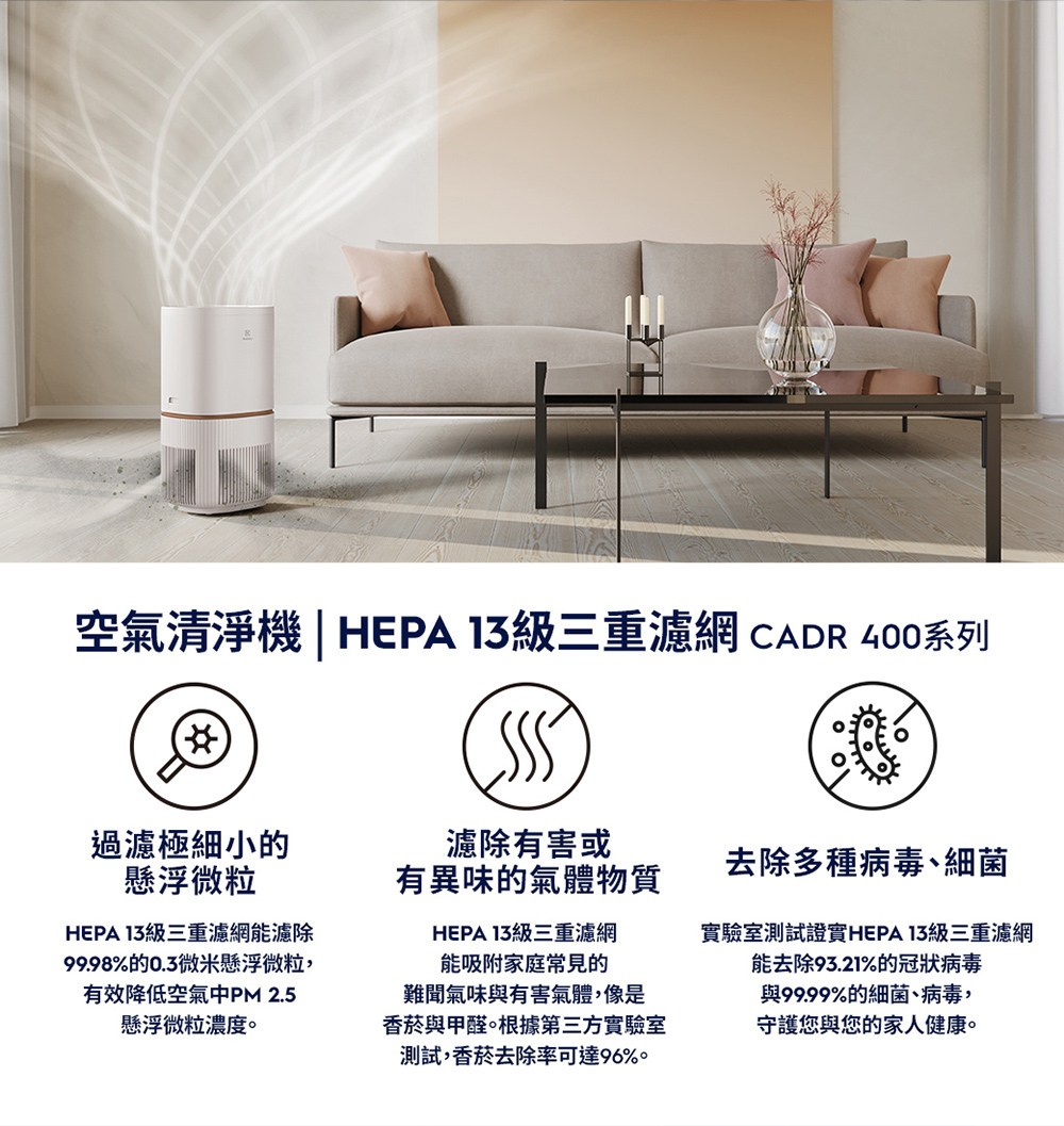 EFFCLN4 空氣清淨機 HEPA13級三重濾網 CADR 400系列