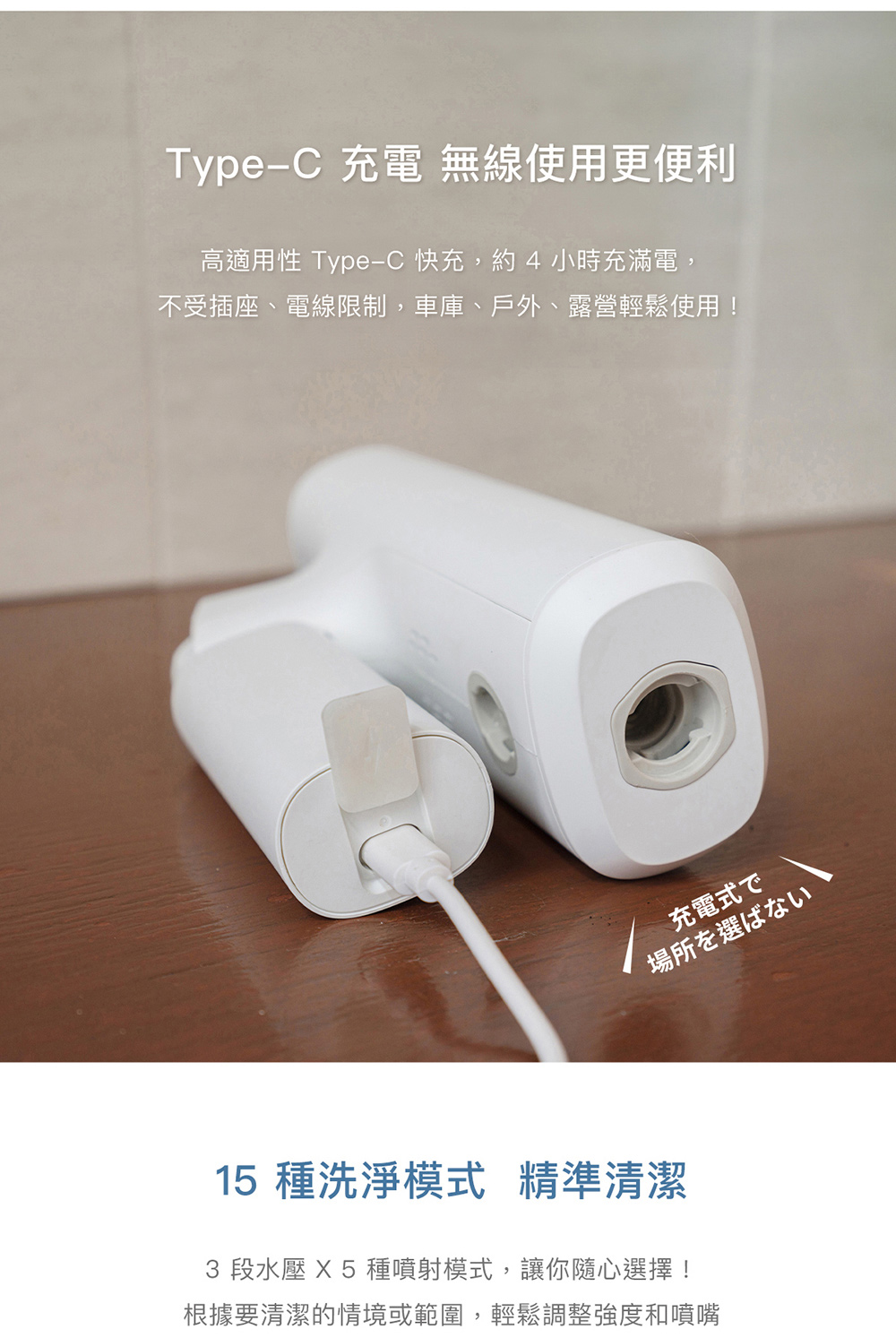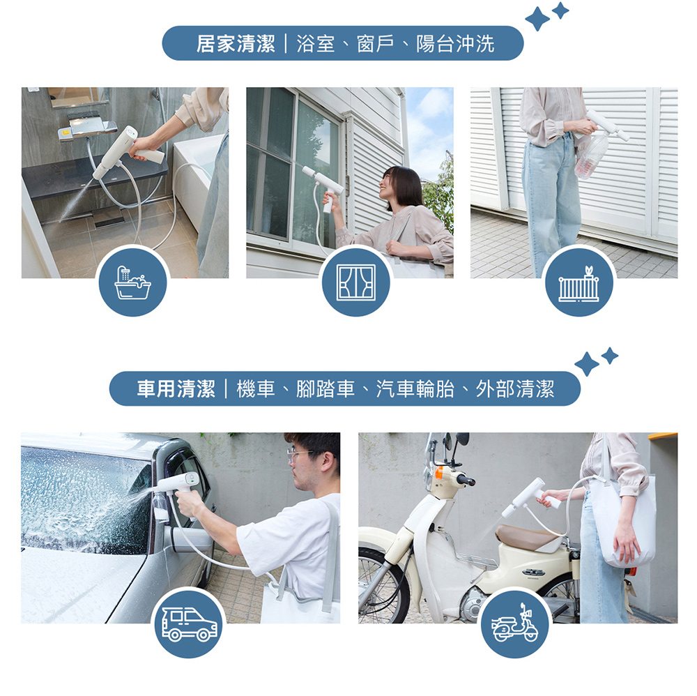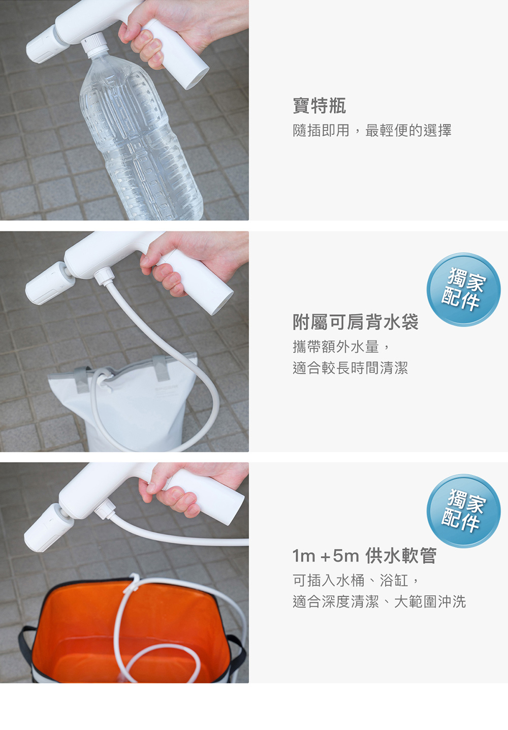 獨家限定組合 水袋+1M水管 15種洗淨模式、適合車用/家用 強勁水壓 深度潔淨