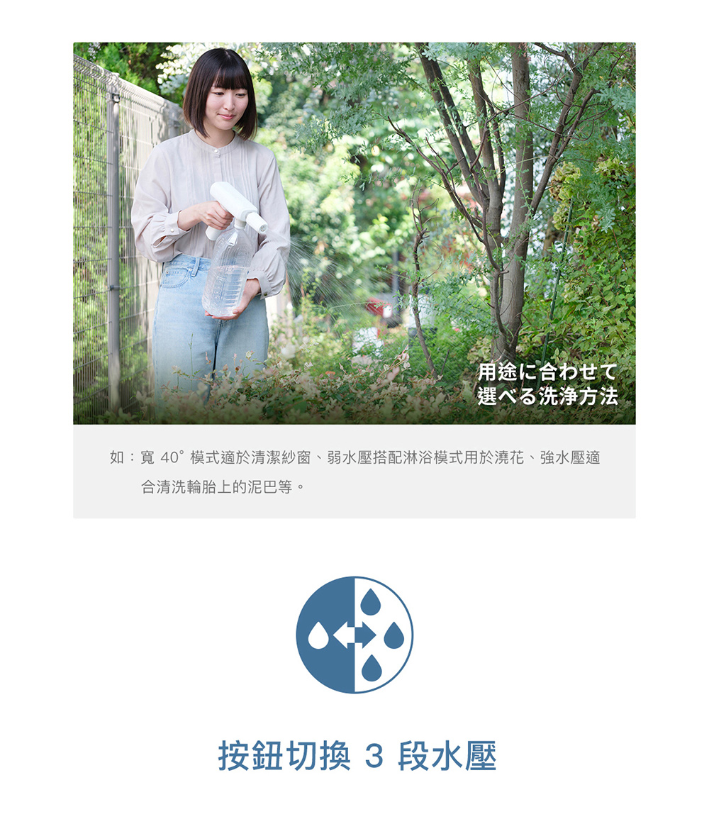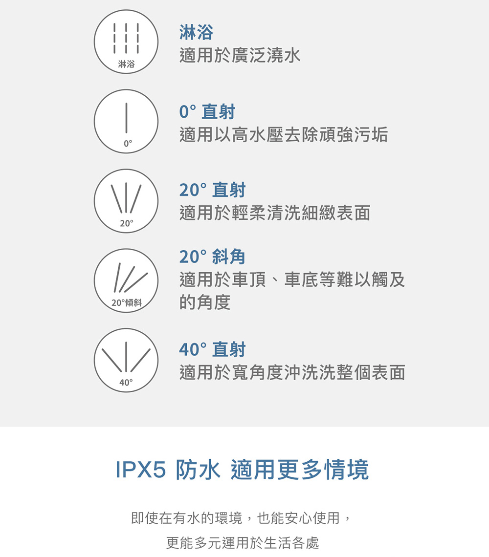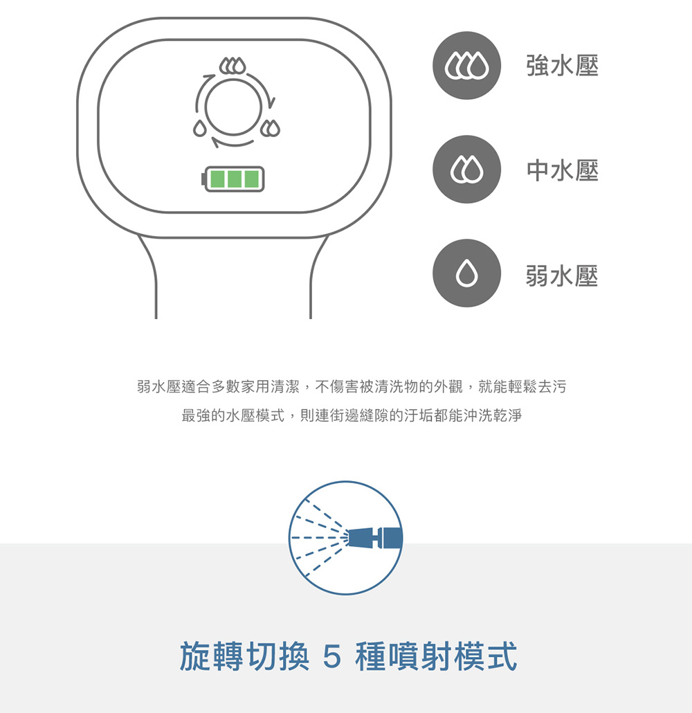 獨家限定組合 水袋+1M水管 15種洗淨模式、適合車用/家用 強勁水壓 深度潔淨
