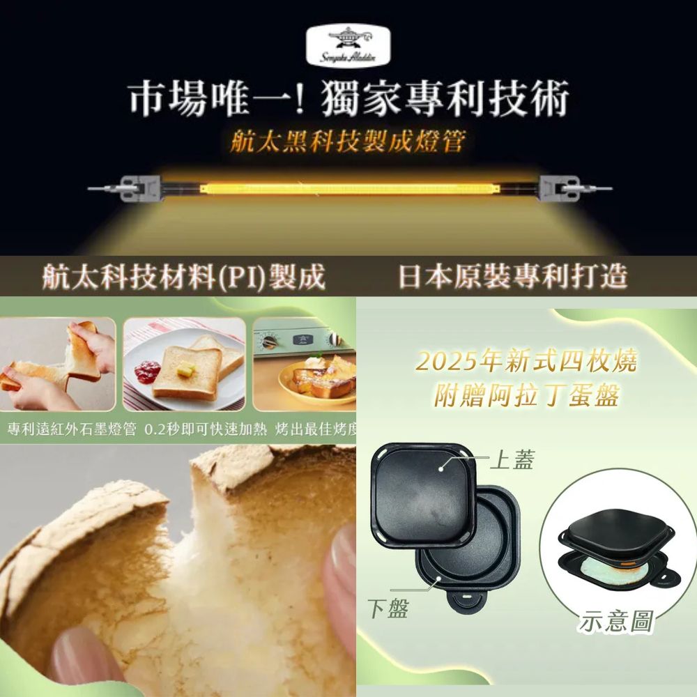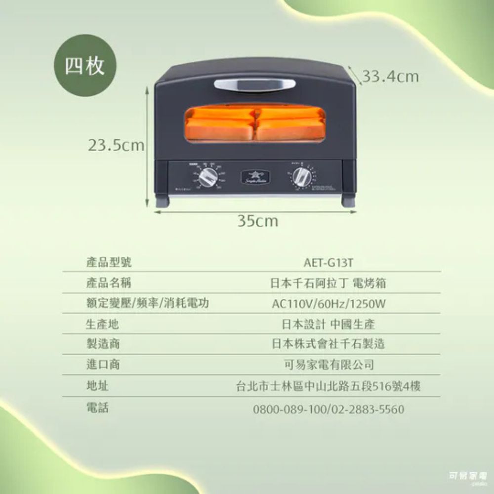 【aladdin日本千石阿拉丁】2025最新套裝 | 日本千石阿拉丁 | 4枚燒復古多用途烤箱|加贈專用蛋盤 | 綠色 - AET-G13T