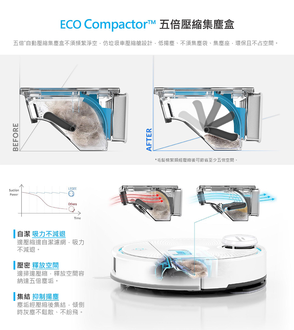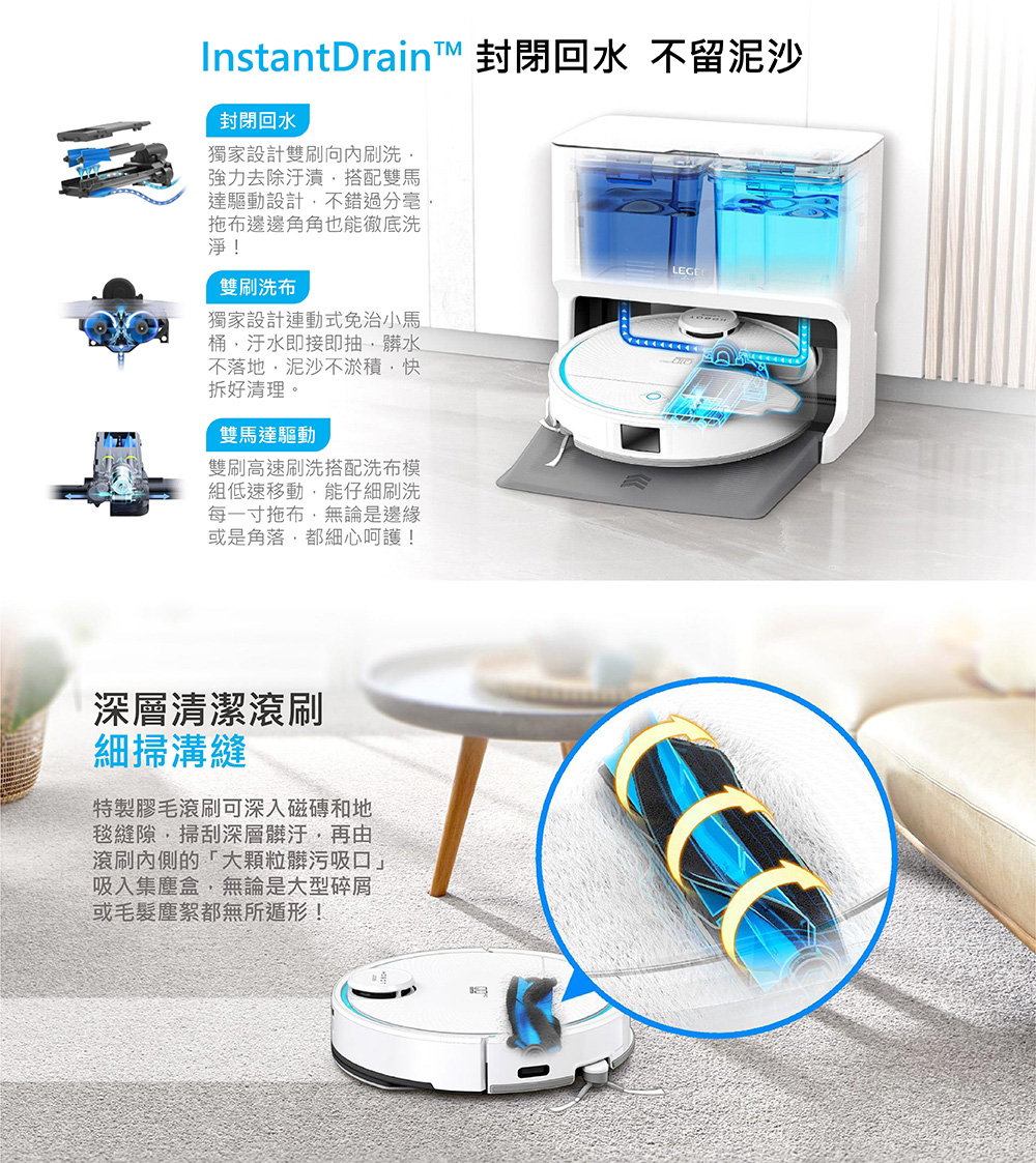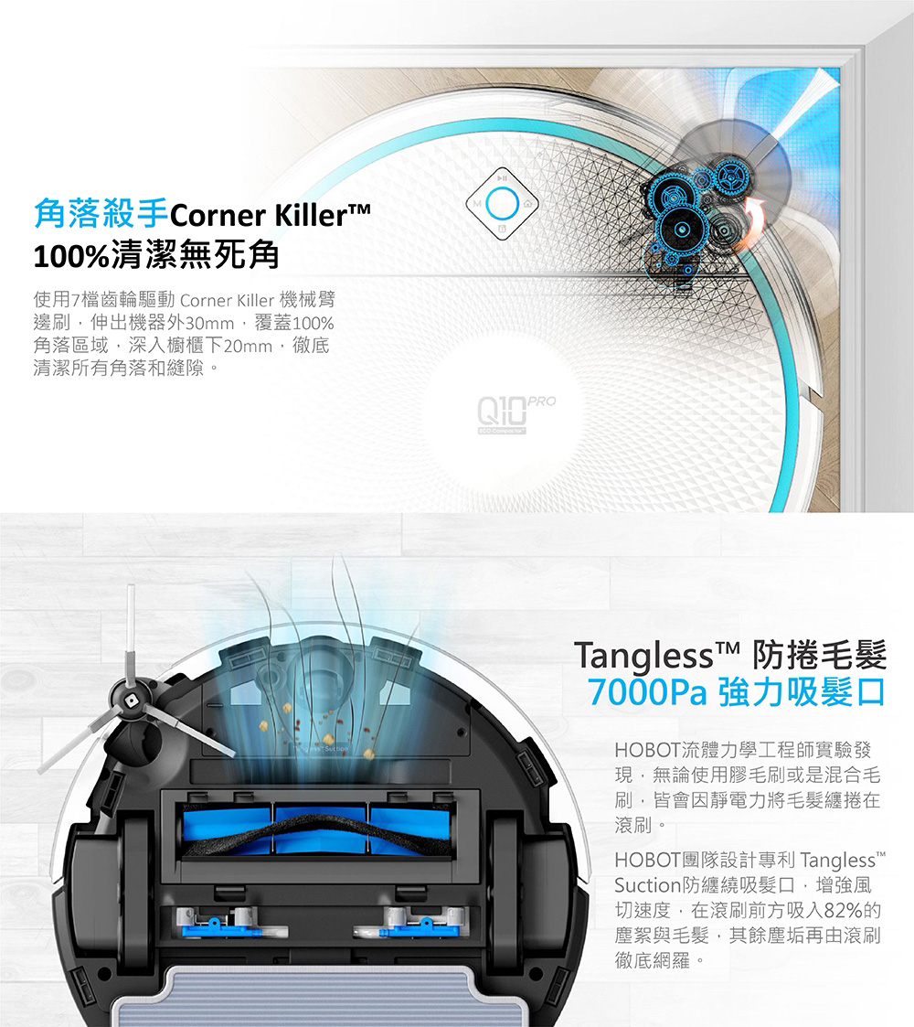 - 以及角落殺手機械伸展邊刷,深入角落櫃底一擊除盡毛髮粉塵。搭配智慧