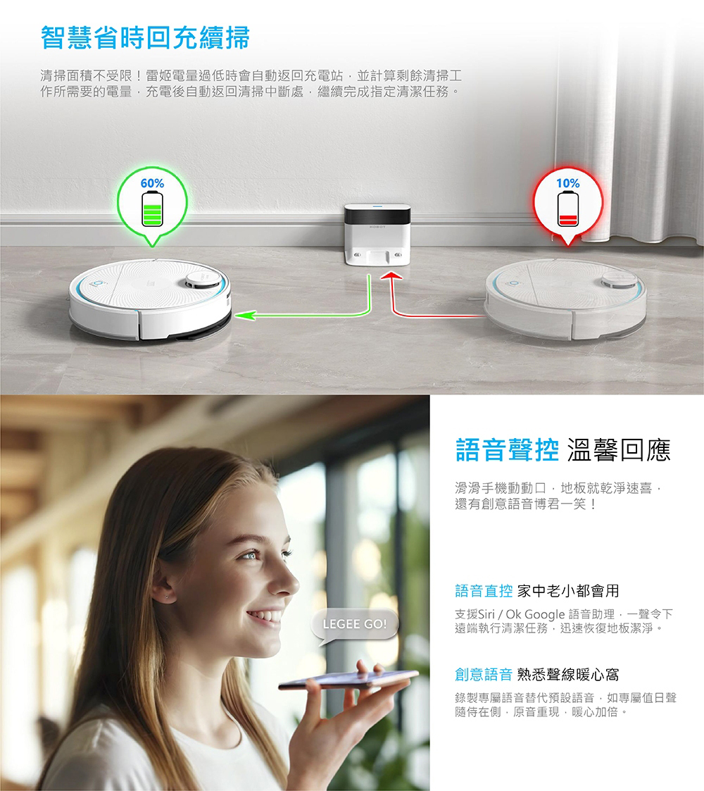 【HOBOT 玻妞】雷姬環保壓縮掃拖地機器人-熱風直烘/自動充電補水/語音聲控 LEGEE-Q10 PRO