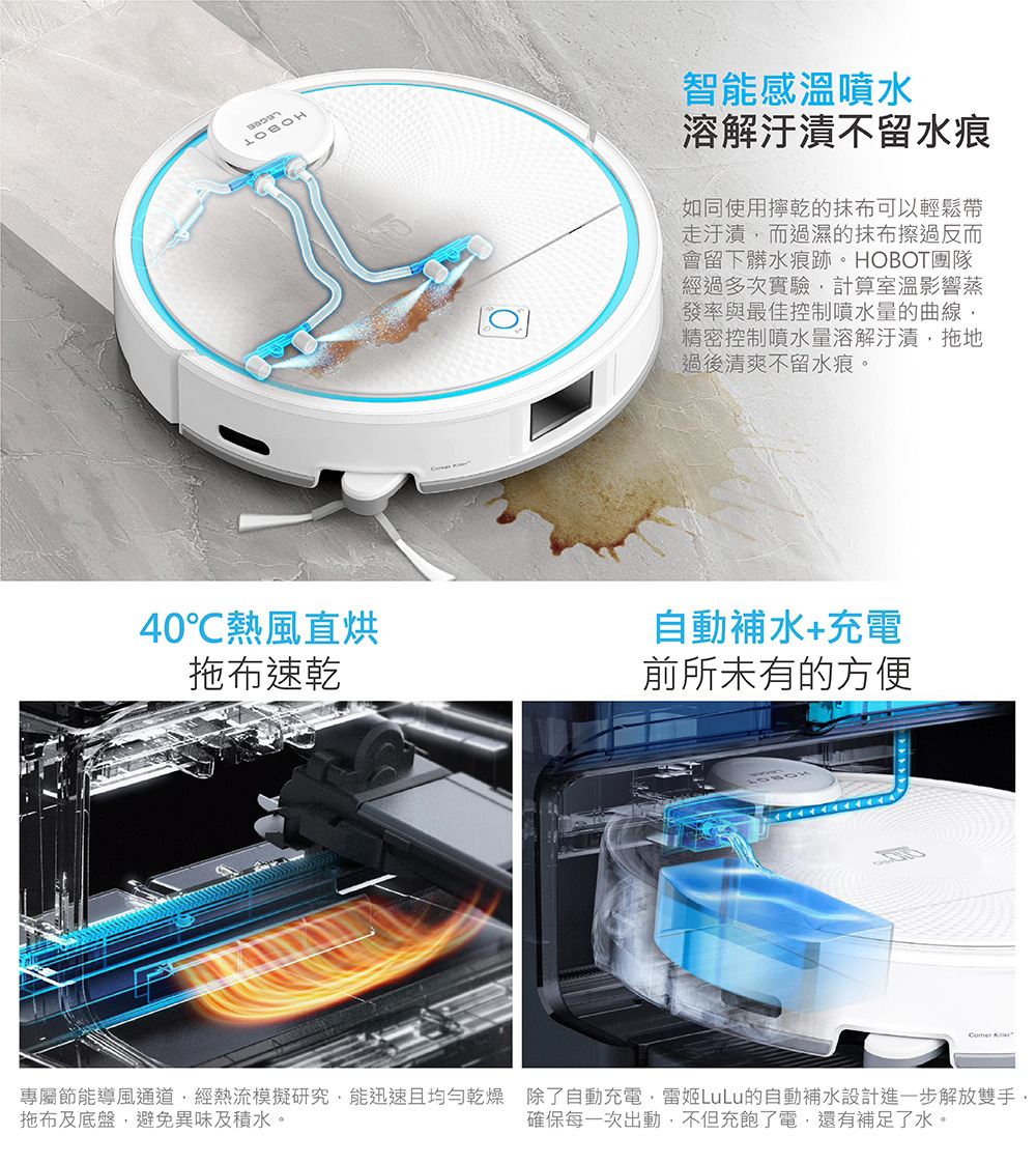 清潔原理:吸、掃、噴、拖 4合1
