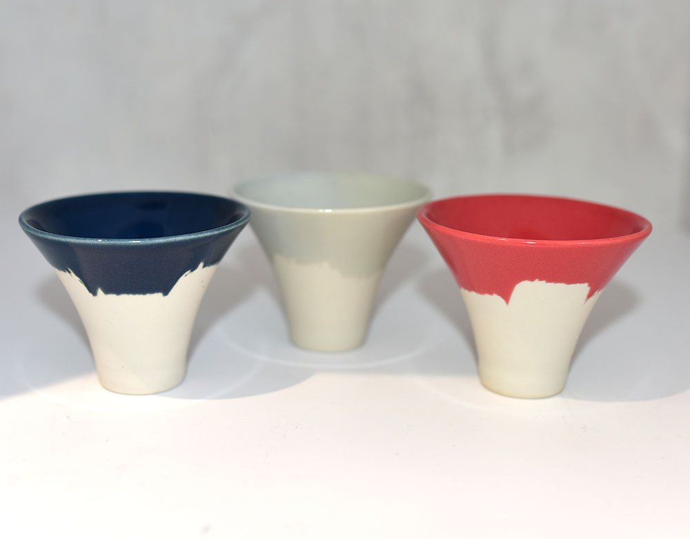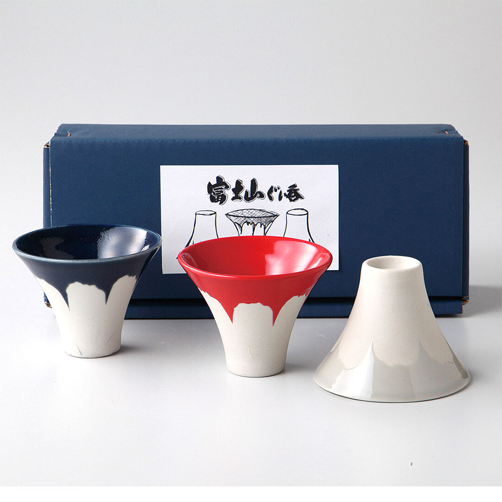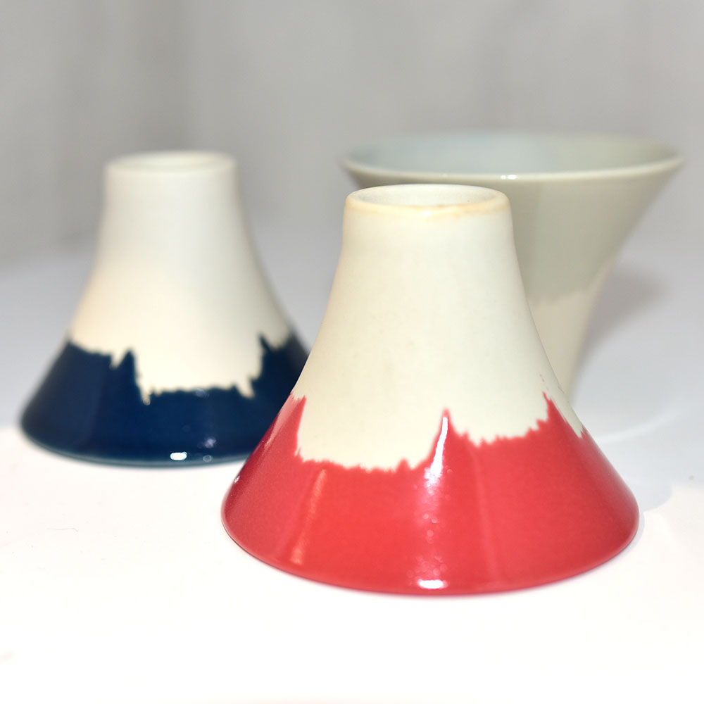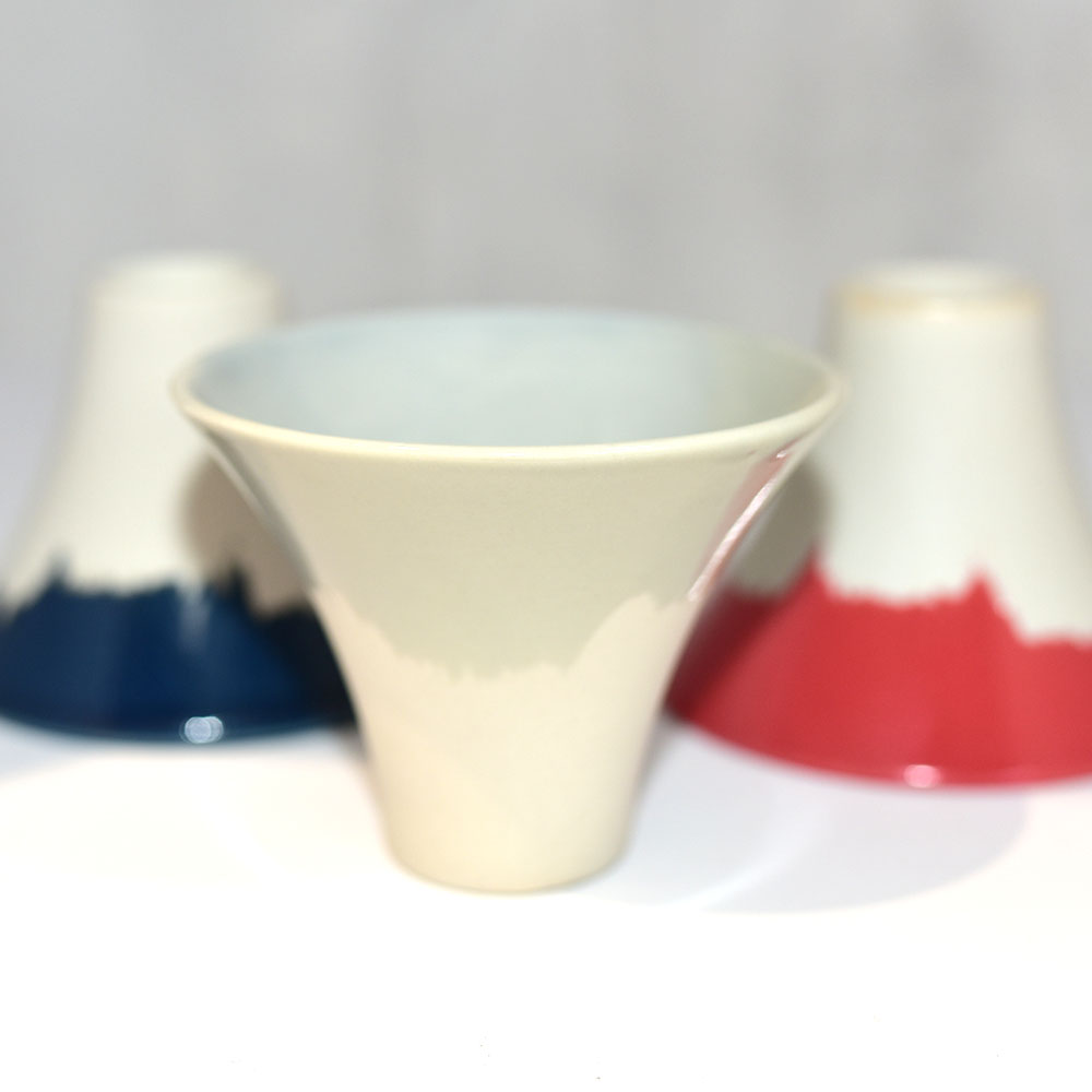 以日本象徵「富士山」為靈感,這款三件式盃組採用美濃燒磁器製作,造型優雅,色彩層次豐富,展現山巒之美與日式工藝的細緻品味。