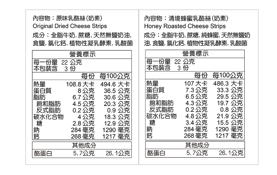 內 容 物|原味乳酪絲22g *3、蜂蜜乳酪絲22g *3