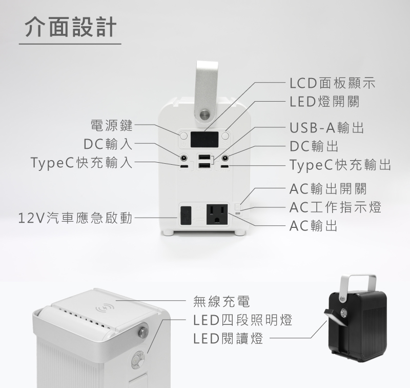 - 多種充電 |USB/AC/TypeC/無線/直流充電