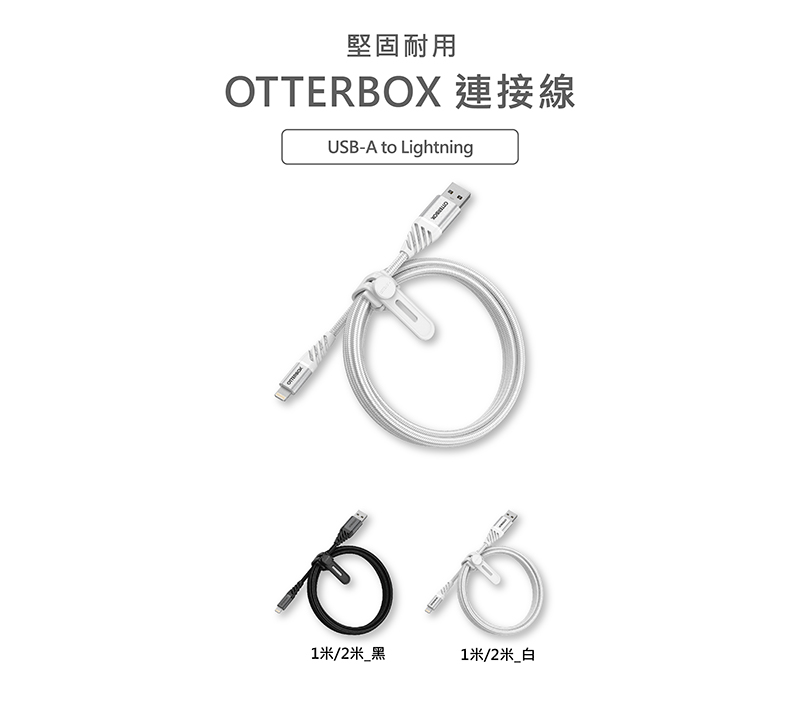 OtterBox USB to Lightning 1M充電傳輸線-白