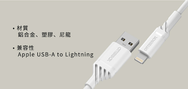 OtterBox USB to Lightning 2M充電傳輸線-白