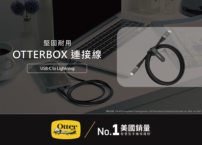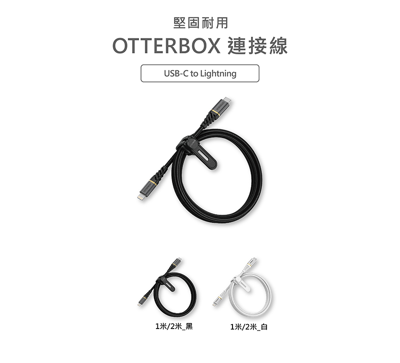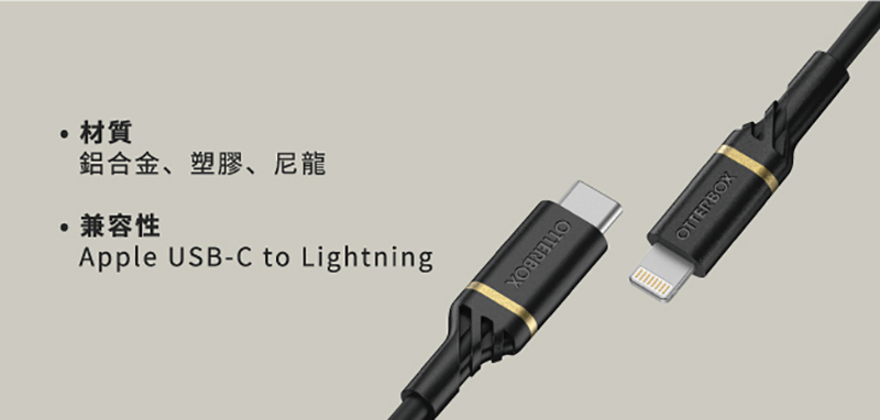 OtterBox USB-C to Lightning 1M快充傳輸線-黑