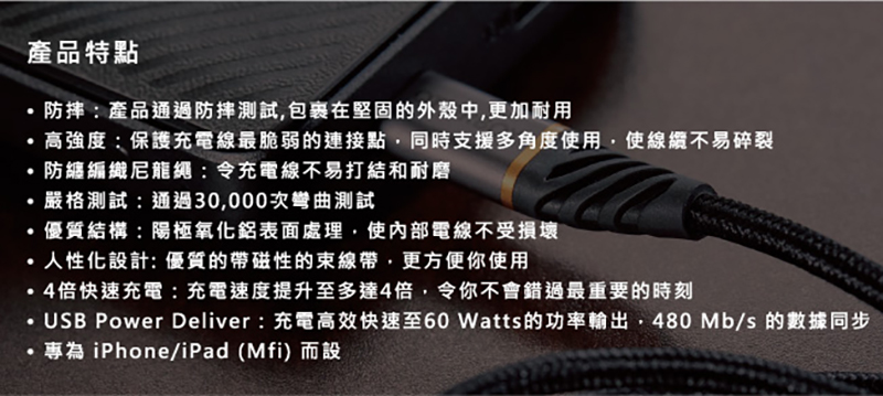 OtterBox USB-C to Lightning 2M快充編織線
