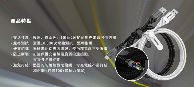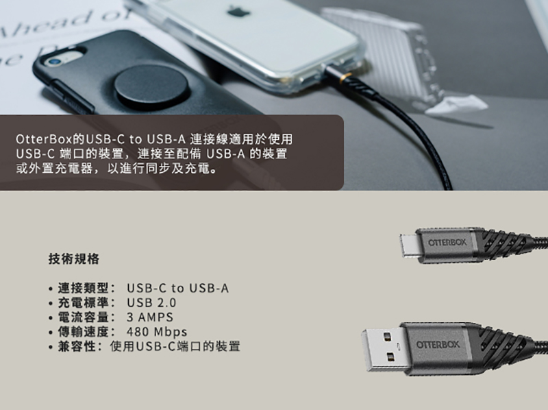 OtterBox USB-C to USB-A 1M充電傳輸線-黑