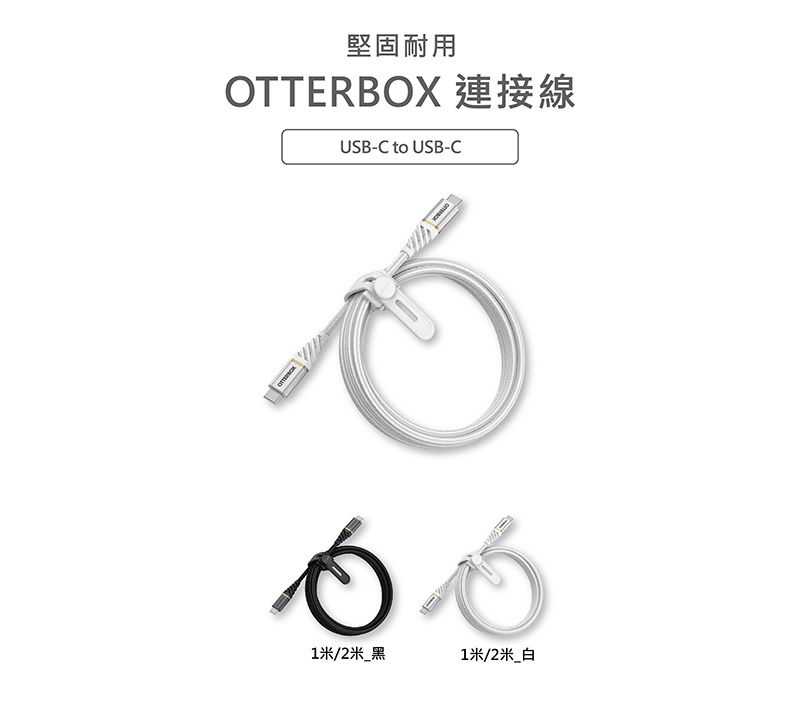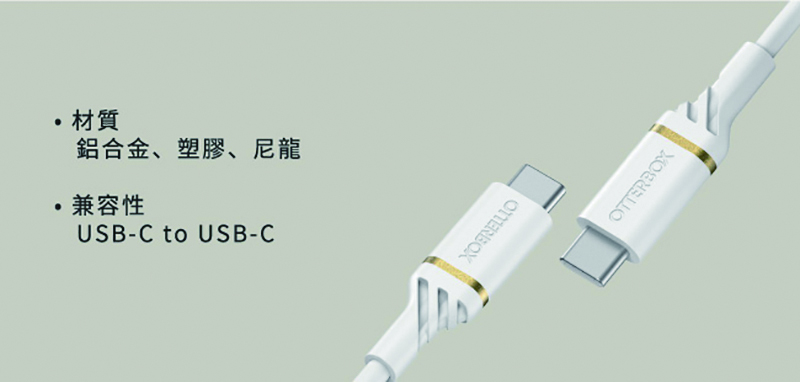 OtterBox USB-C to USB-C 2M快充傳輸線-白